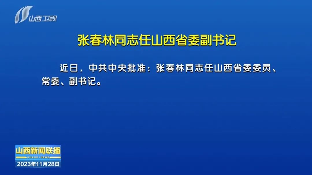 山西广播电视台微信公号11月28日消息,张春林同志任山西省委副书记。