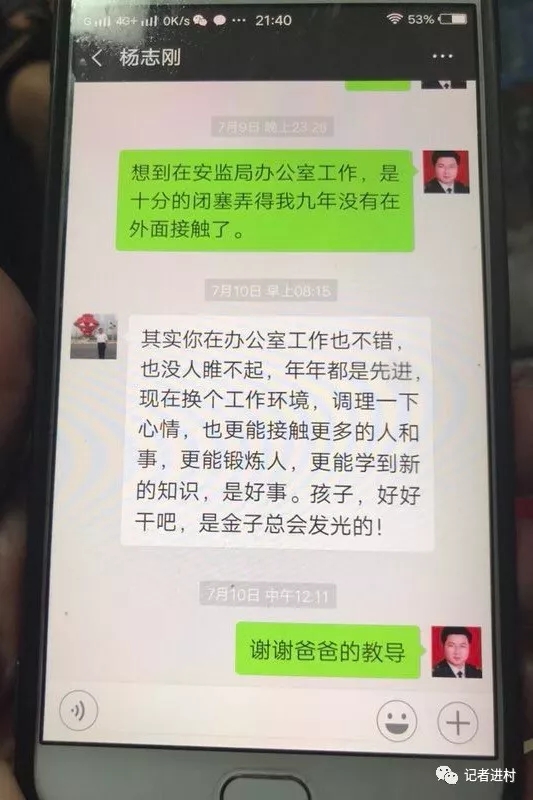 多少个夜深人静的夜晚,父子俩就这样在微信里聊天,但没有聊过关于提拔、待遇方面的话题。