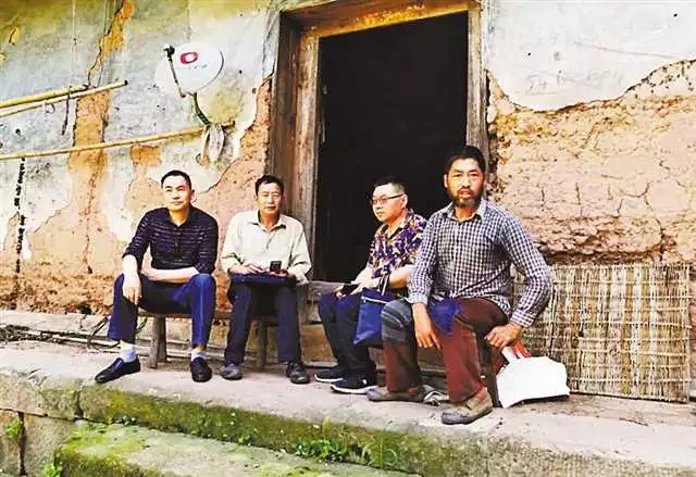 杨骅(右二)生前在走访贫困群众。(金鸡镇政府供图)