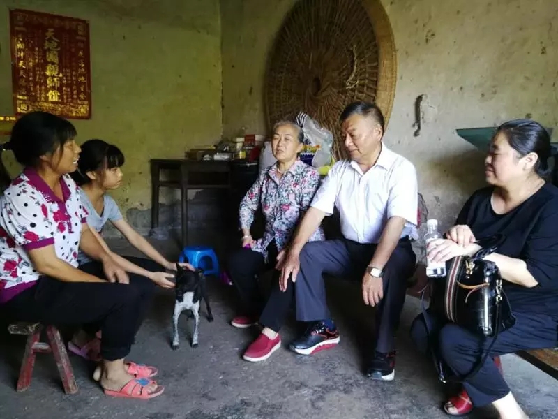 杨志刚与老伴、儿媳看望慰问贫困户张启斌、刘兴国。