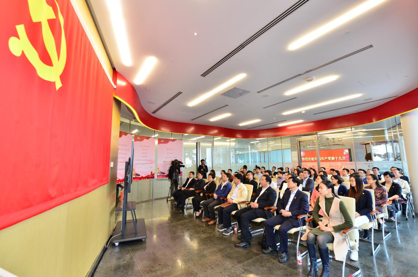 上海中心大厦部分党员在上海中心金领驿站统一收看党的十九大开幕式