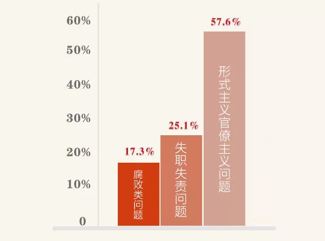 查处的260件问题中,形式主义、官僚主义问题占57.6%,腐败类问题占17.3%,失职失责问题占25.1%。