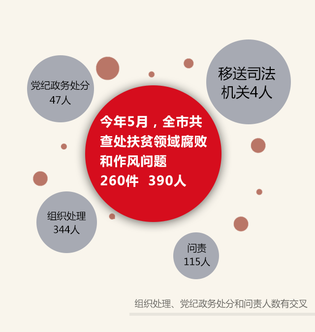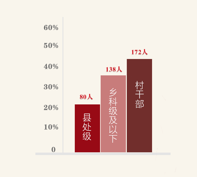 受处理的390人中,县处级80人,占20.5%;乡科级及以下138人,占35.4%;村干部172人,占44.1%。