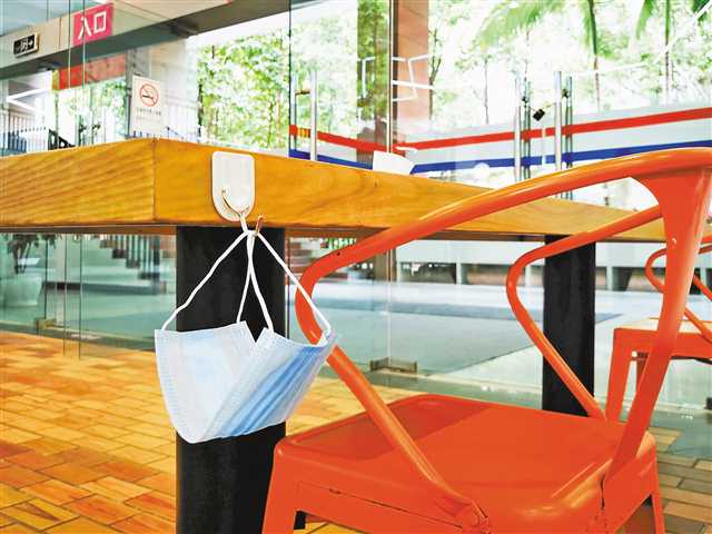 ▲4月9日,南开中学在南园食堂餐桌一角设置口罩挂钩。记者 苏思 摄