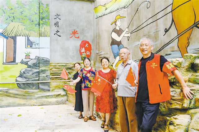 位于渝中区大溪沟街道的枣二巷步道,居民在此休闲乘凉,身边是彩色的二十四孝图等装饰,很是漂亮。记者 齐岚森 摄/视觉重庆
