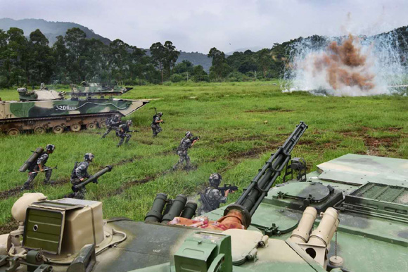 “全排注意,成‘一’字战斗队形,迅速占领进攻阵地!”夏日炎炎,一场装甲步兵排射击综合检验战斗,在山林腹地间打响。