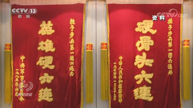 在庆祝中华人民共和国成立70周年阅兵式上的战旗方队中,有一面旗帜光彩夺目,旗帜上写着“英雄硬六连”。
