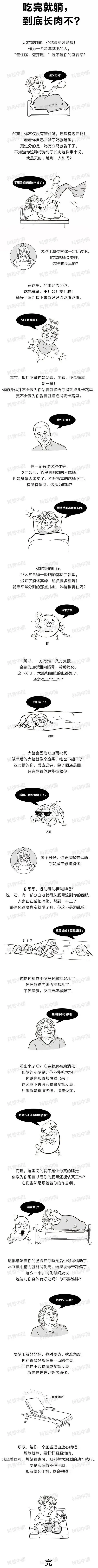 其实,吃完饭后,不论你选择躺着、坐着还是站着,消耗的卡路里都相差无几,因此吃完就躺并不会让你长更多的肉。