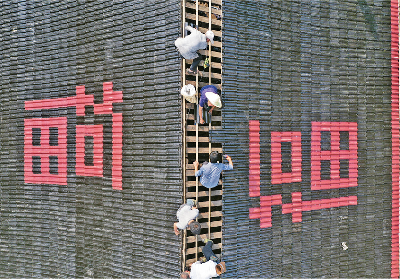 2020年5月12日,广西融水苗族自治县大坪村的村民们在进行危旧房改造。搬进修整一新的房子,村民的获得感、幸福感、安全感切实提升。 新华社记者 黄孝邦/摄