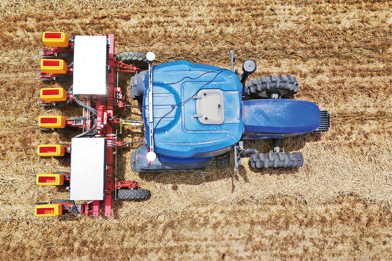 “十三五”时期,“天眼”望天、“蛟龙”探海、超级计算机竞逐榜首,北斗导航全球组网,5G网络加速成型,数字经济占GDP比重超三成,创新驱动发展成果与广阔的应用场景交汇融合,支撑我国经济高质量发展取得新成效。图为2020年5月26日,在河南省邓州市小杨营镇安众村,加装有北斗导航系统的拖拉机在无人驾驶状态下播种。 新华社记者 冯大鹏/摄