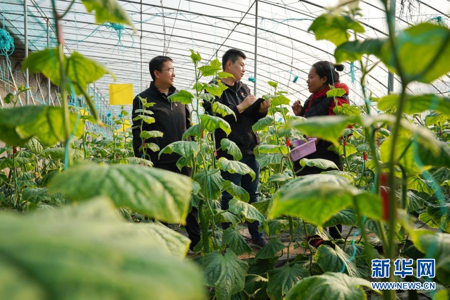 2020年12月10日,河北省巨鹿县纪委监委工作人员(左一和左二)在巨鹿县一个农业园区的大棚向种植户了解扶贫资金落实情况。 新华社记者 牟宇 摄