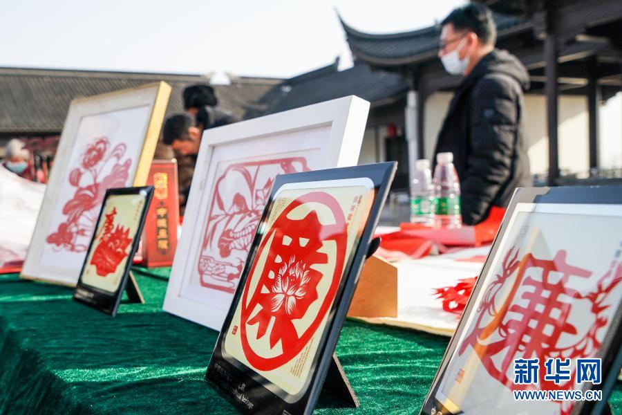 1月14日,江苏省连云港市灌云县纪委监委在当地同兴镇梅园文化广场举行廉政文化进乡村活动。这是在活动现场拍摄的廉政主题剪纸。 新华社记者 李博 摄