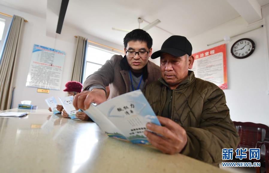 2020年12月17日,在广西鹿寨县鹿寨镇波井村政务服务中心,纪检监察干部(前左)向村民介绍“微权力”清单。 新华社记者 黄孝邦 摄