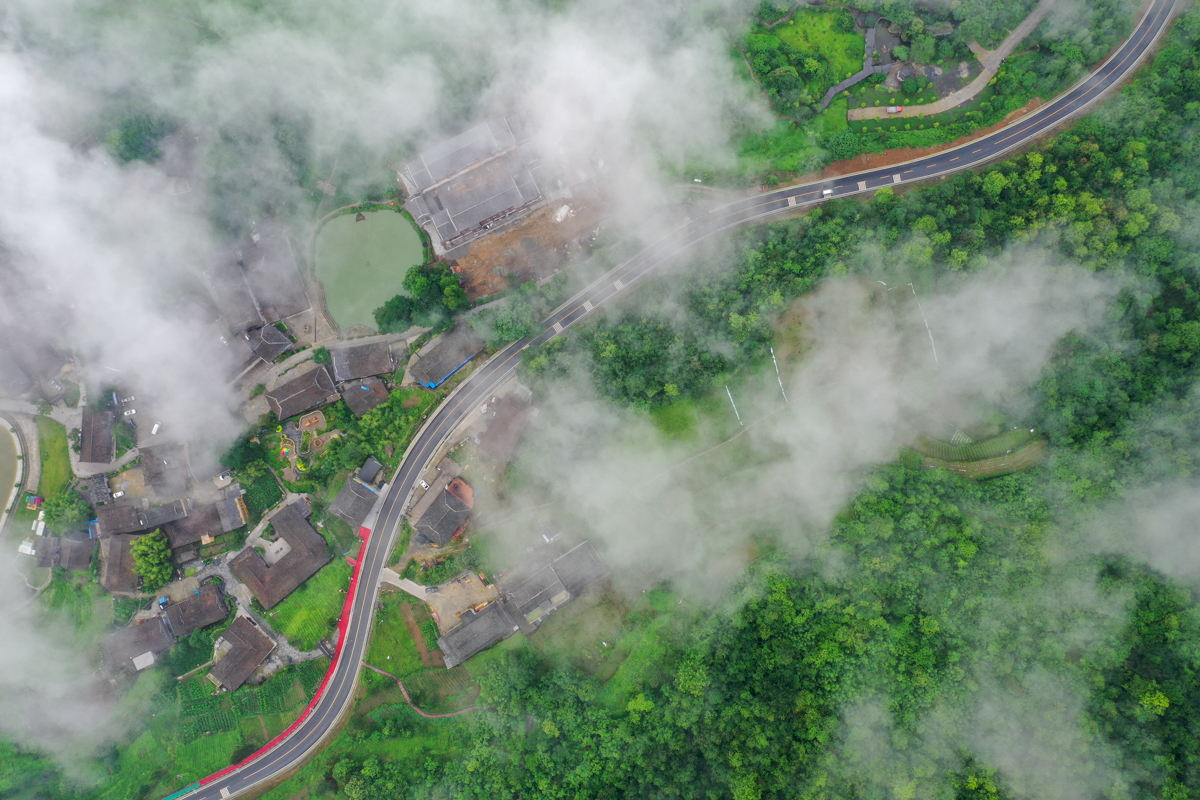 公路通了,旅游火了。这是2020年6月18日拍摄的武隆区后坪苗族土家族乡(无人机照片) 卢晓龙 摄