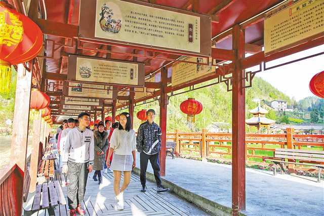 三月二十八日,古路镇观峰村,游客经过“孝德文化长廊”。通讯员 陈凌云 摄\视觉重庆