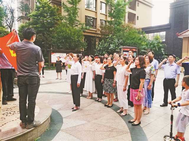 璧山区璧兰河一号小区党支部组织党员重温入党誓词。(璧山区委宣传部供图)