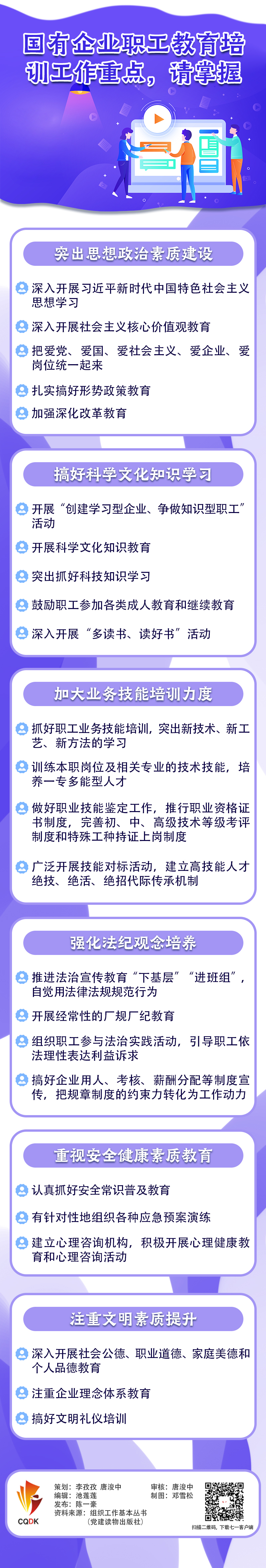 这堂课重点讲解国有企业职工教育培训工作的相关知识,记得收藏哦。