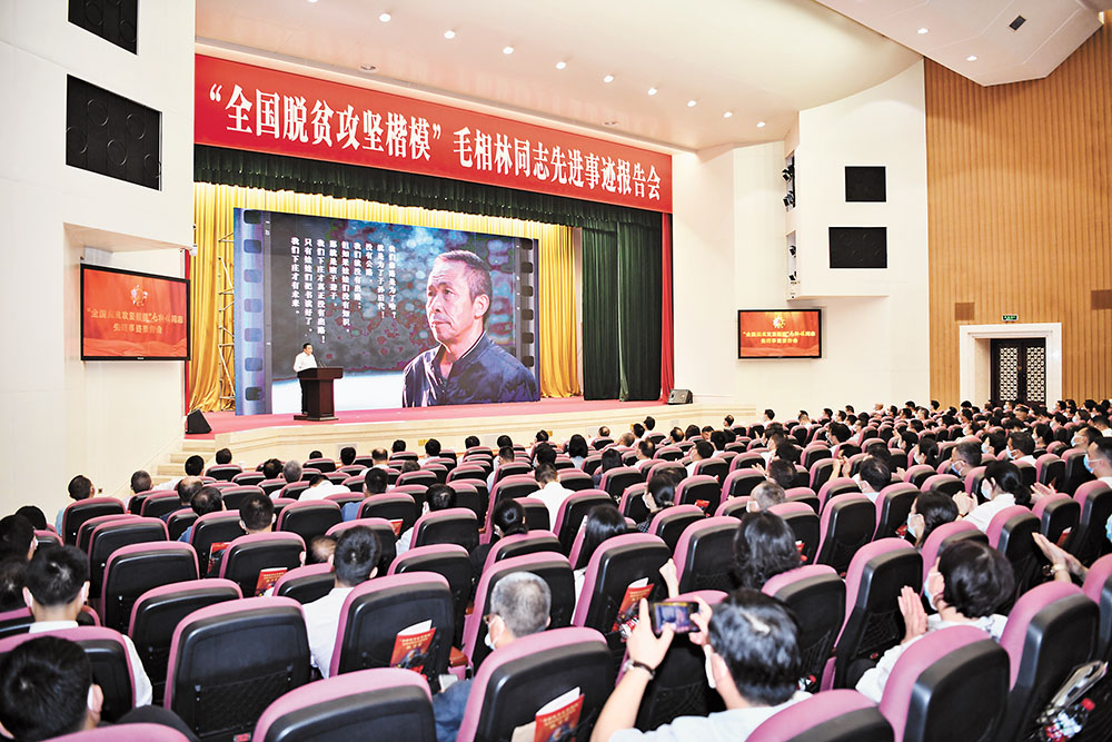 6月10日,市委礼堂,“全国脱贫攻坚楷模”毛相林同志先进事迹报告会现场。记者 谢智强 摄/视觉重庆