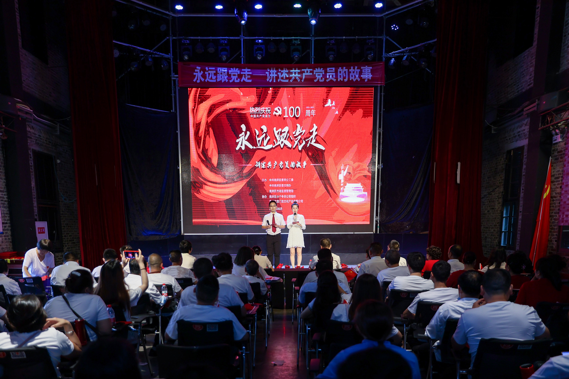 近日,由重庆市南岸区委非公工委、区委文明办、区市场监督管理局主办,南岸区小微企业个体工商户专业市场非公党组织等协办的“永远跟党走——讲述共产党员的故事” 主题党日活动,在南岸区龙门浩老街剧场举行。