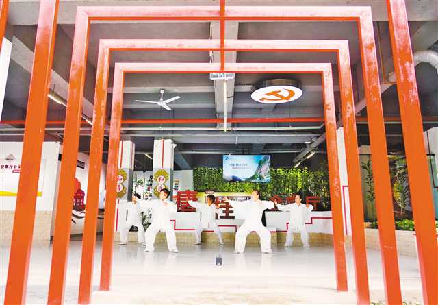 9月8日,江北区铁山坪街道唐桂社区,太极拳队队员在“唐桂会客厅”练太极拳,准备参加区里的比赛。记者 崔力 摄/视觉重庆
