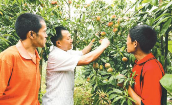 铜梁区维新镇新滩村党支部书记张邦能(中)带领群众发展产业。