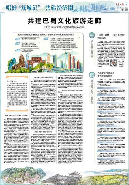 打造全国文化旅游发展创新改革高地,打造全国文化和旅游协同发展样板,打造国际范、中国味、巴蜀韵的世界级休闲旅游胜地……6月29日,共建巴蜀文化旅游走廊重大活动启动仪式在渝州宾馆举行,仪式上介绍了日前印发的《巴蜀文化旅游走廊建设规划》(以下简称《规划》)。