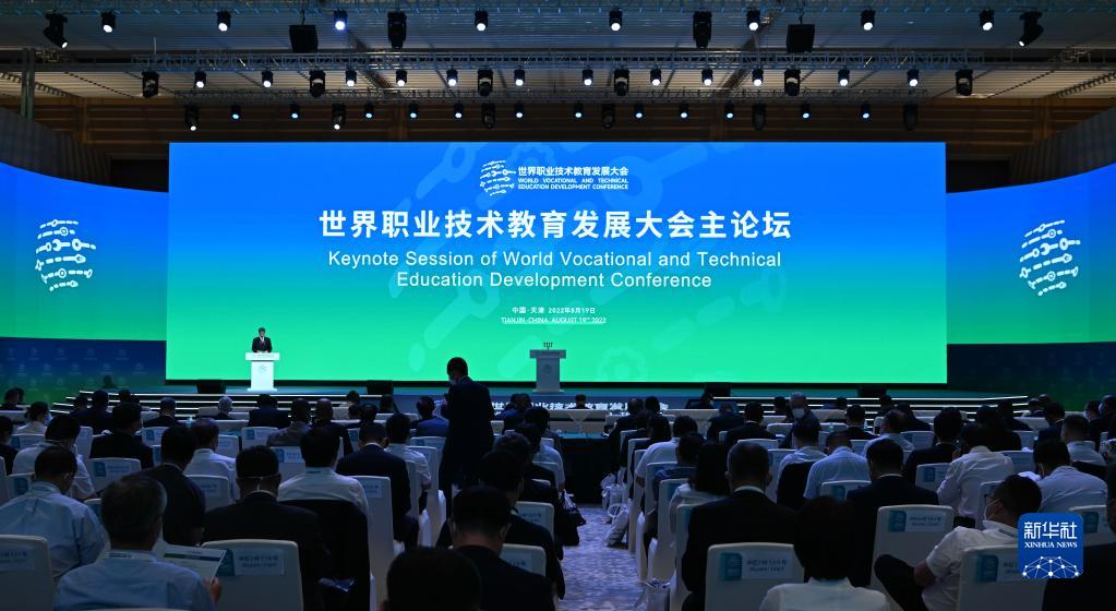 这是在国家会展中心(天津)拍摄的世界职业技术教育发展大会主论坛现场(8月19日摄)。新华社记者 孙凡越 摄