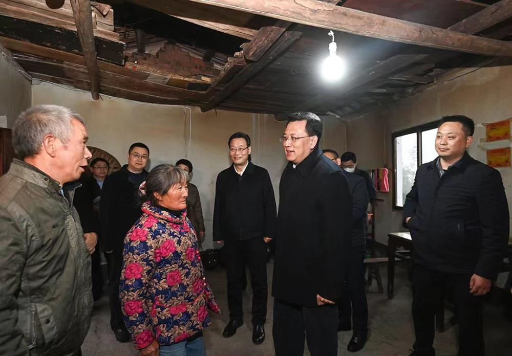 ▲12月10日,在石柱县三河镇,市委书记袁家军看望脱贫户范明贵,了解他家的生产生活等情况。记者 苏思 摄/视觉重庆