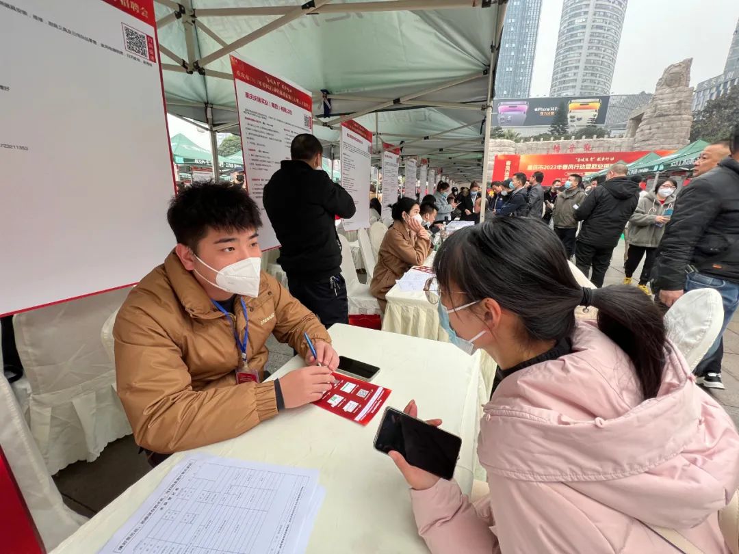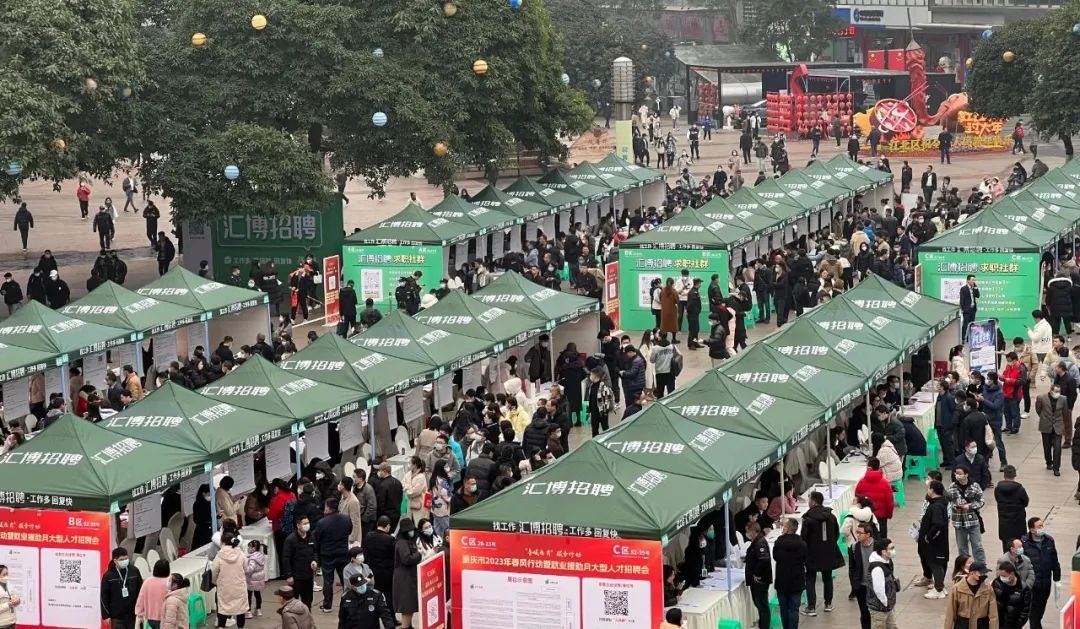 2月4日,重庆联合四川共同举办的2023年春风行动暨就业援助月大型人才招聘会在观音桥步行街广场举行。