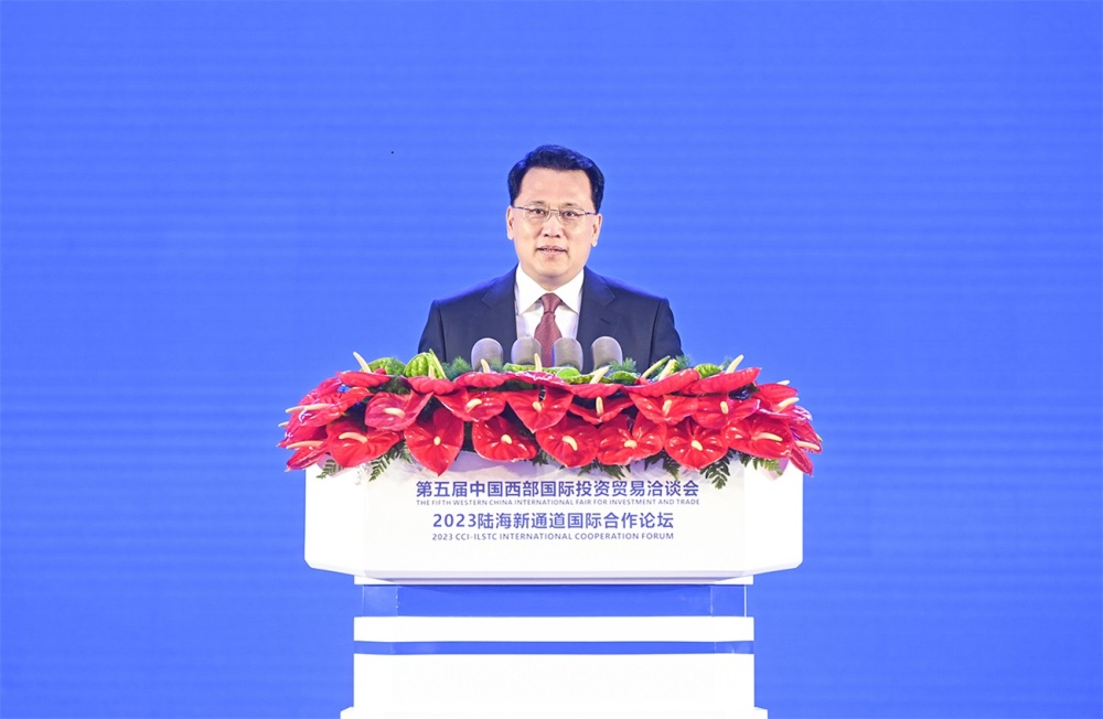 上午10时25分,中共中央政治局委员、重庆市委书记袁家军宣布:第五届中国西部国际投资贸易洽谈会暨2023陆海新通道国际合作论坛开幕。