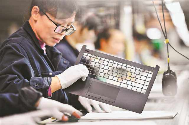 重庆宇海精密制造股份有限公司,工人在检查生产线上的笔电零件。记者 谢智强 摄/视觉重庆