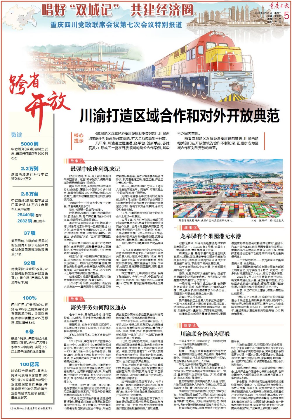 跨省开放 川渝打造区域合作和对外开放典范