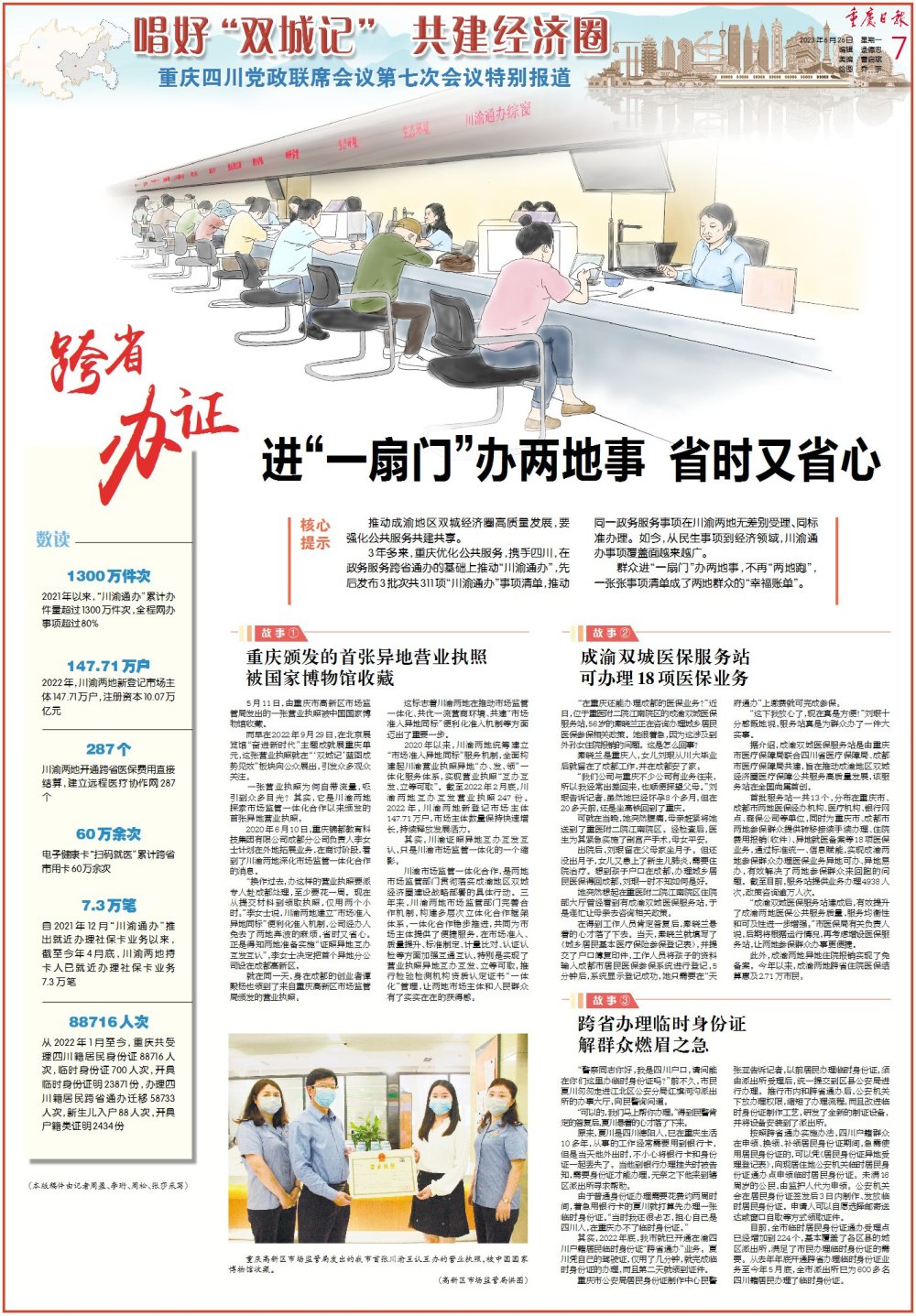 自2021年12月“川渝通办”推出就近办理社保卡业务以来,截至今年4月底,川渝两地持卡人已就近办理社保卡业务7.3万笔