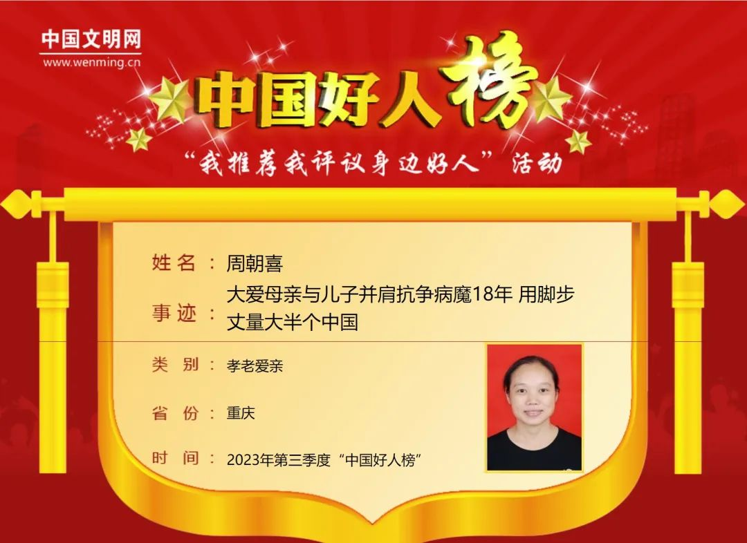 周朝喜(綦江区):大爱母亲与儿子并肩抗争病魔18年用脚步丈量大半个中国