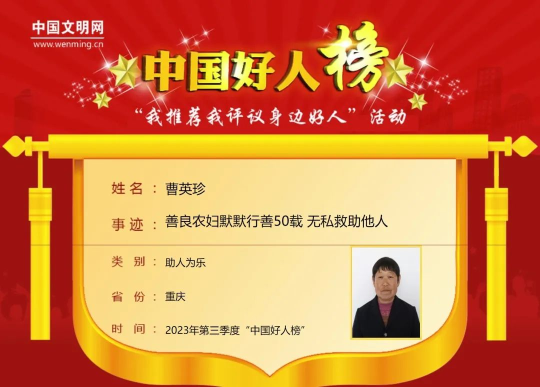 曹英珍(云阳县):善良农妇默默行善50载无私救助他人