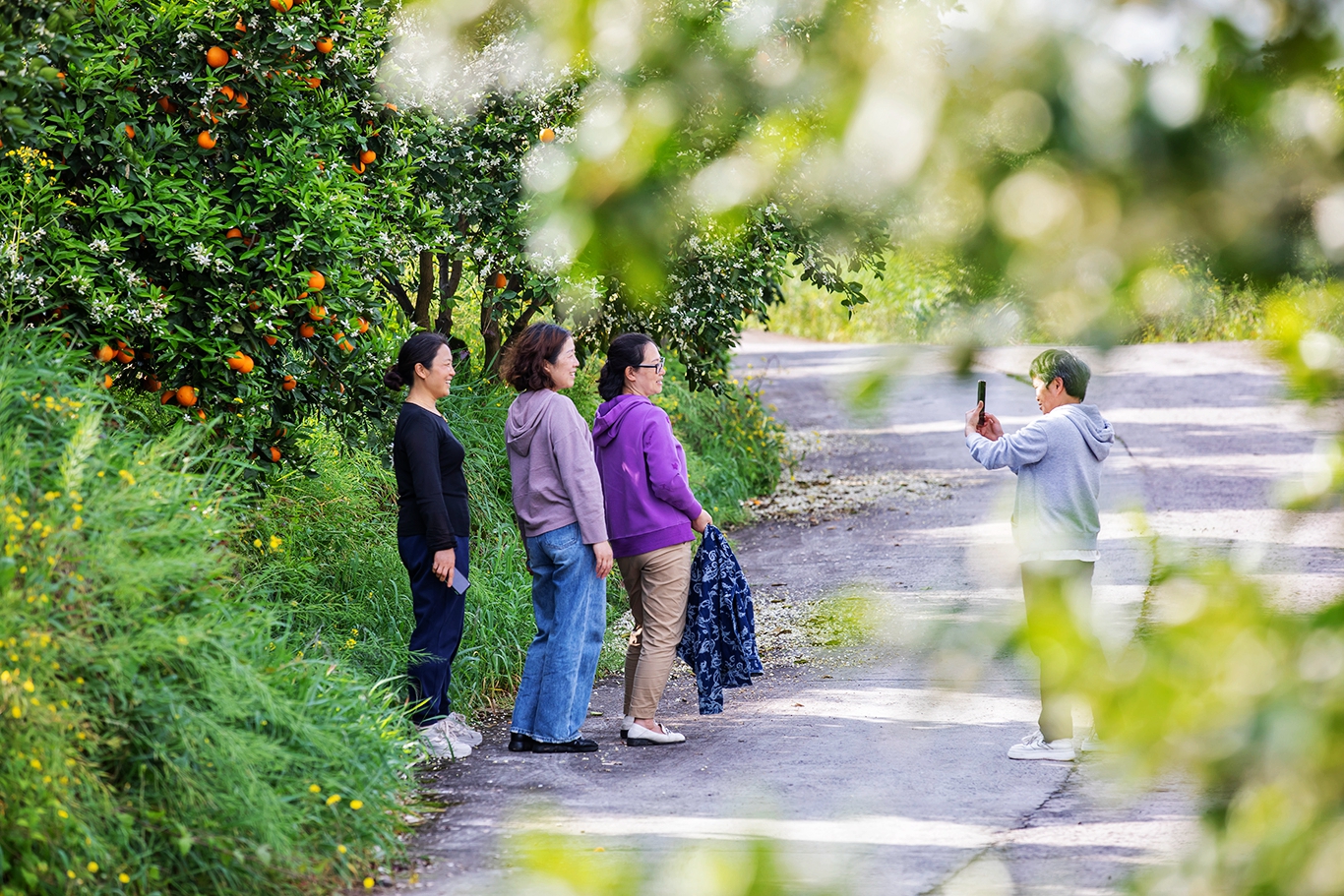 橘花绽放、硕果压枝……4月8日,重庆市忠县三峡橘海再现花果同树奇观,吸引不少游人前来观赏打卡。