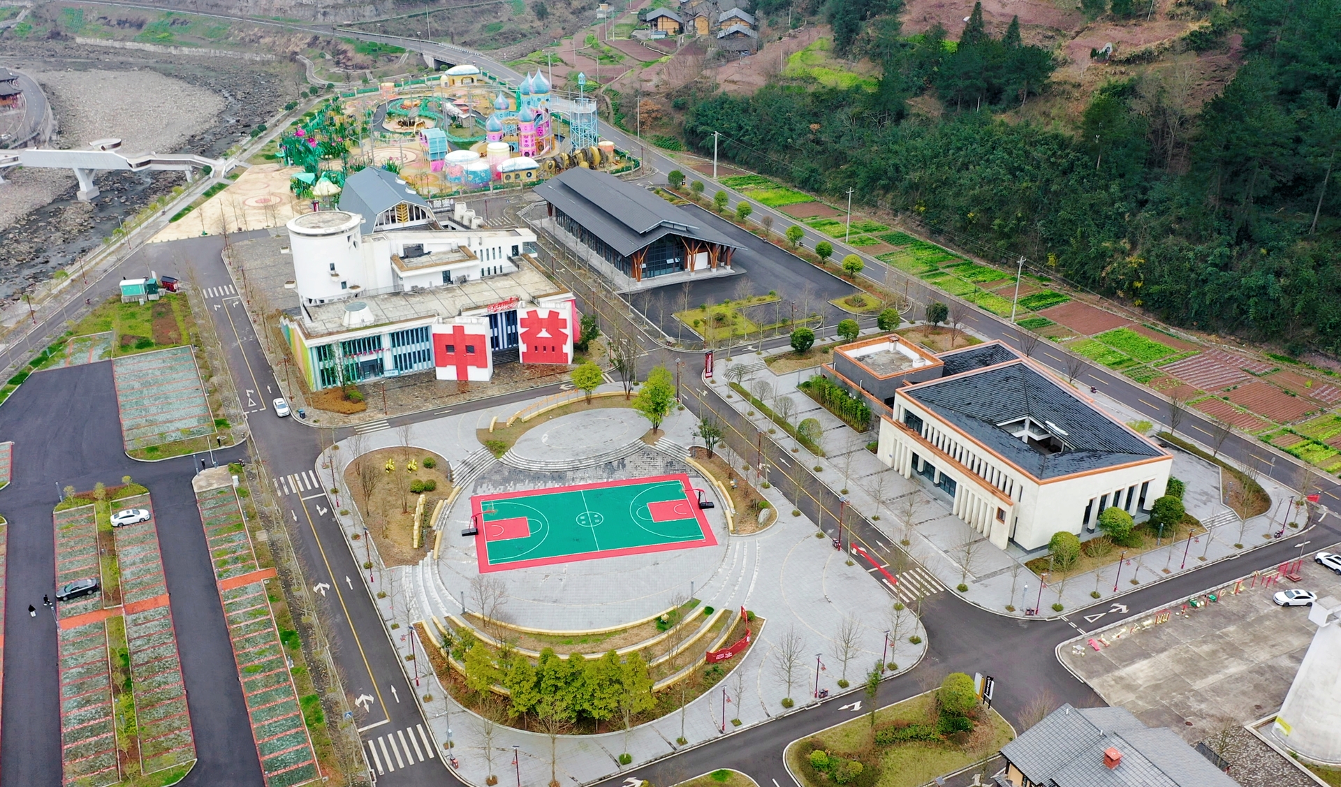 进入位于武陵山区腹地的石柱土家族自治县,遥遥望见,被春耕的农田与郁郁苍苍的树林簇拥着的中益乡,各类别具特色的设施坐落其中,其中许多是我们以前来时未曾见过的,真是好一幅美丽的乡村春景。