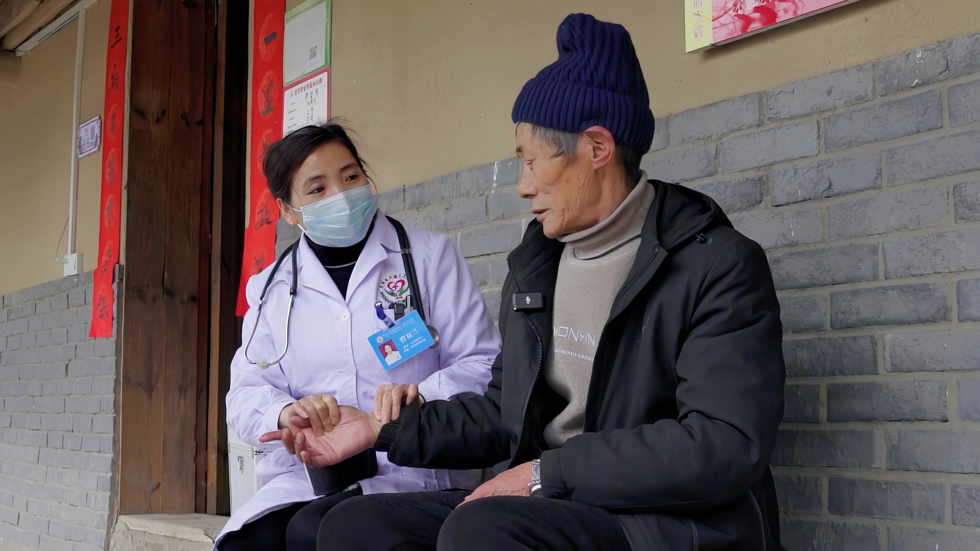 过了一会儿,我们见到,谭登周从马清医生的办公室离开,医生给他开了几副药,嘱咐他回家注意保暖,按时吃药,谭大叔看起来安心不少。