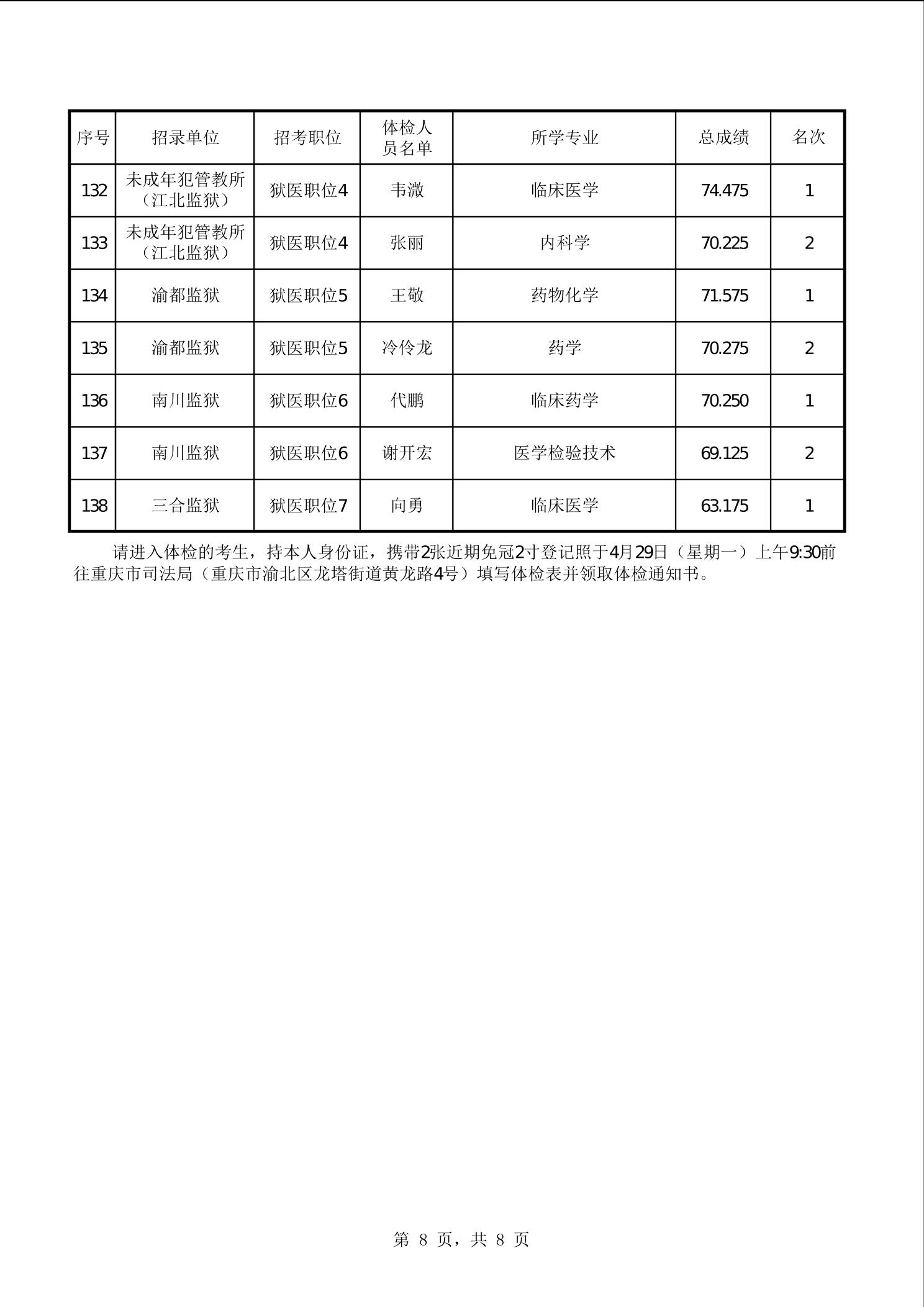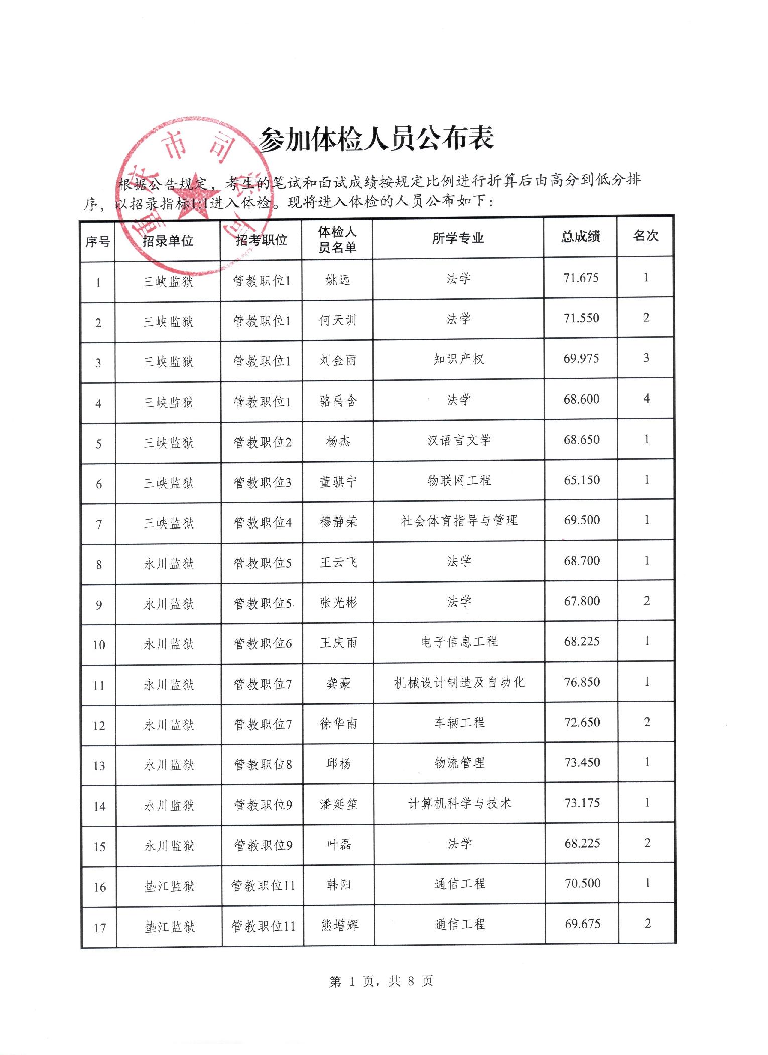 市司法局2024年度公开考试录用公务员参加体检人员公布表(4月27日)