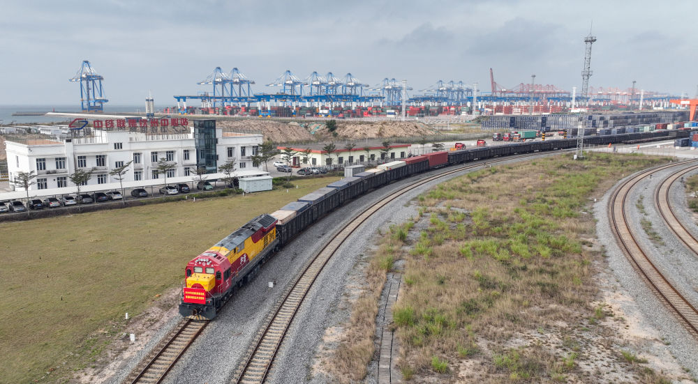 2024年1月19日,满载东盟国家商品的年货班列驶出广西钦州港东站,开往重庆团结村站和成都城厢站。西部陆海新通道,正乘着“一带一路”的东风不断延伸,让发展的红利惠及沿线各国人民。