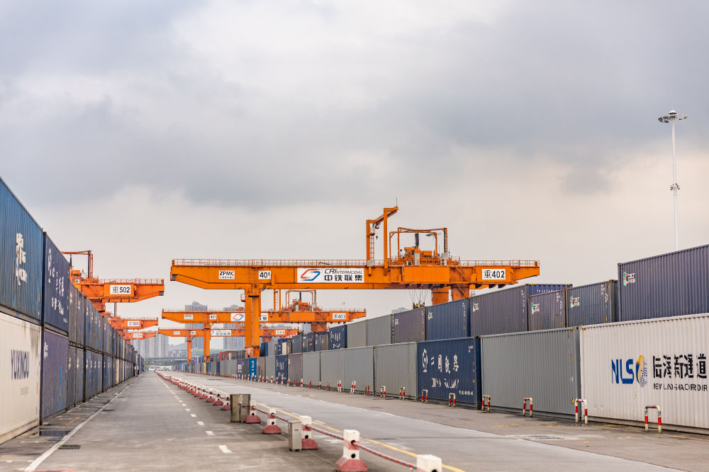 自重庆国际物流枢纽园区向北,一列列满载货物的中欧班列经新疆霍尔果斯口岸出境,联结起区域开放发展之路。