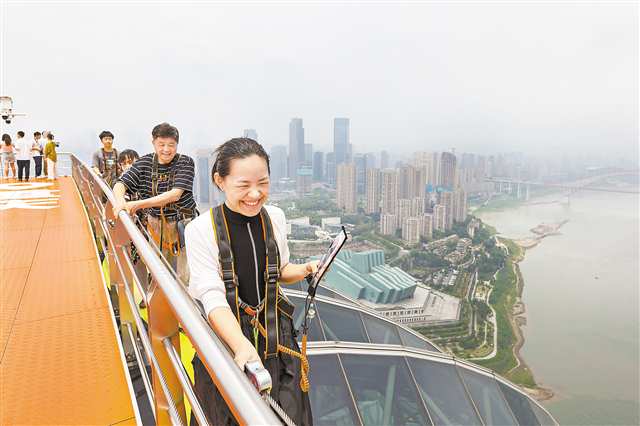 6月17日,渝中区来福士顶层水晶连廊,市民游客体验高空游览项目。