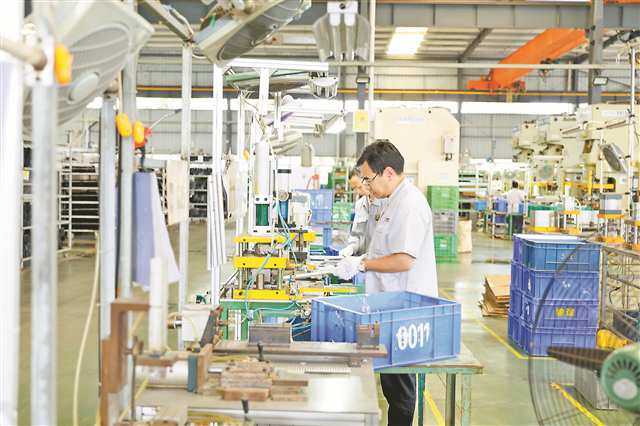 ▲川渝高竹新区骏谊机械制造有限公司生产车间内,工作人员正在赶制订单。(广安市委宣传部供图)