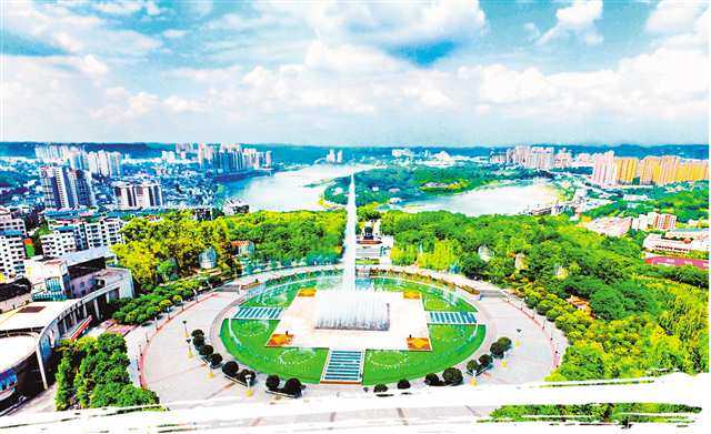 ▲蓝天白云下的广安市思源广场。(广安市委宣传部供图)
