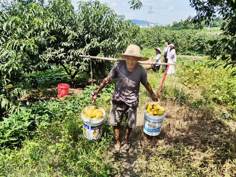据钓鱼城街道金马村党支部书记刘德沿介绍,该村采取“大户+小户+散户”模式,积极引导和支持当地农户种植黄桃,成功带动了200余户农户参与种植。目前,全村共种植黄桃400余亩,其中300亩进入丰产期,预计可产黄桃近450吨,户均增收约2万元。