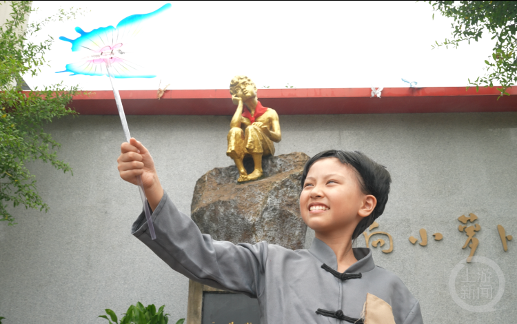 石佳宇收到北京师范大学录取通知书,曾特地回到学校向“小萝卜头”分享这份快乐。他讲述了背后原因,在一次“11.27”纪念活动中,他成为了“小萝卜头”扮演者,在“监狱”里,他放飞了蝴蝶,也在那一刻,他的理想也展翅飞翔。“小学6年,我听着‘小萝卜头’的故事长大,善良和热爱,已经融入我的血液。”