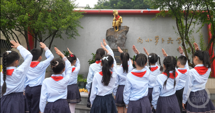 有表演、有讲解、有案例,这场红岩思政课生动而饱满。在“小萝卜头”塑像前,成长在新时代的少年们,举起右拳,庄严宣誓:我们是勇于拼搏,敢于超越的火红少年!