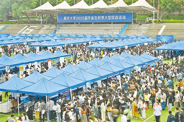 10月18日,重庆大学A区思群广场,重庆大学2025届毕业生秋季大型双选活动举行。来自全国各地各行业的500家用人单位进校揽才,提供3万余个就业岗位,吸引了校内外1万余名毕业生入场求职。(资料图片)记者 郑宇 李志峰 摄/视觉重庆