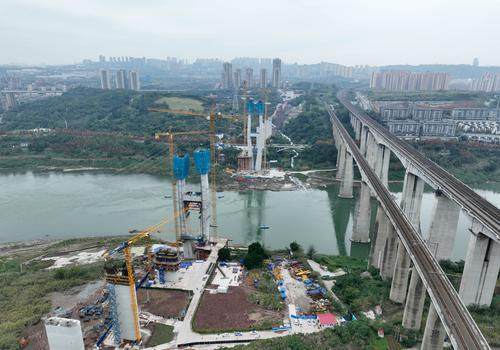 ▲12月18日,成渝中线高铁井口嘉陵江特大桥正加紧桥墩建设。 记者 罗斌 摄/视觉重庆