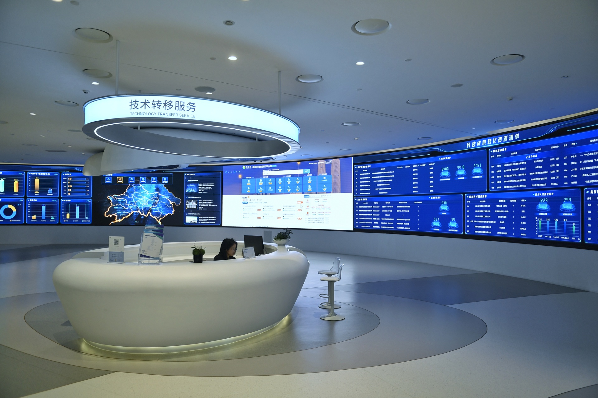2024年10月9日,成都科创生态岛1号馆内的科创服务大厅。图/刘坤